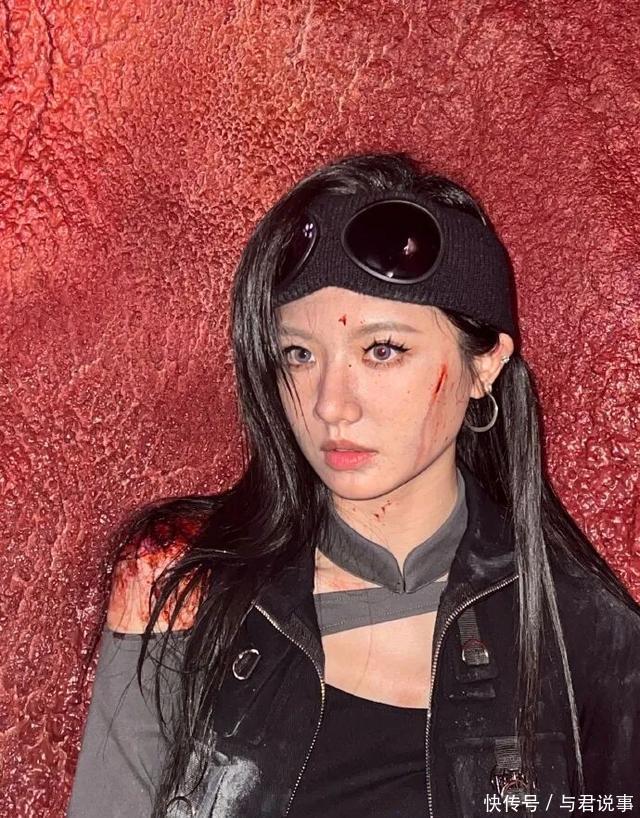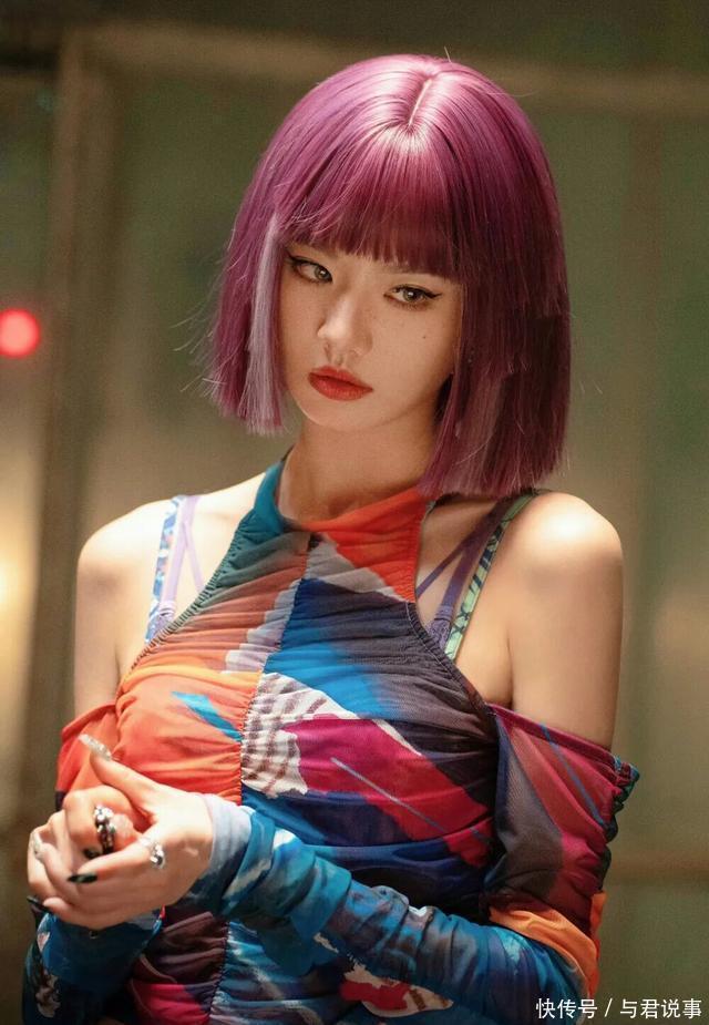 她的造型以青灰短直发搭配牛仔衣、皮衣为主,夜店演出时身着亮片吊带裙,染着花色头发,浓妆造型配合特殊美甲,浓艳绝伦!